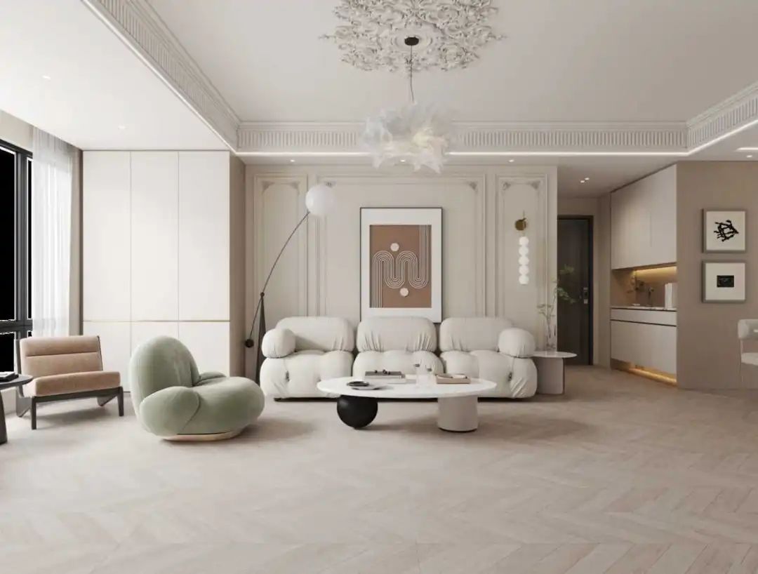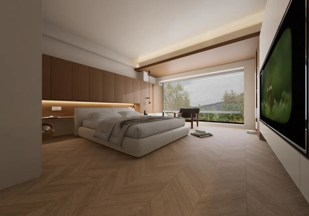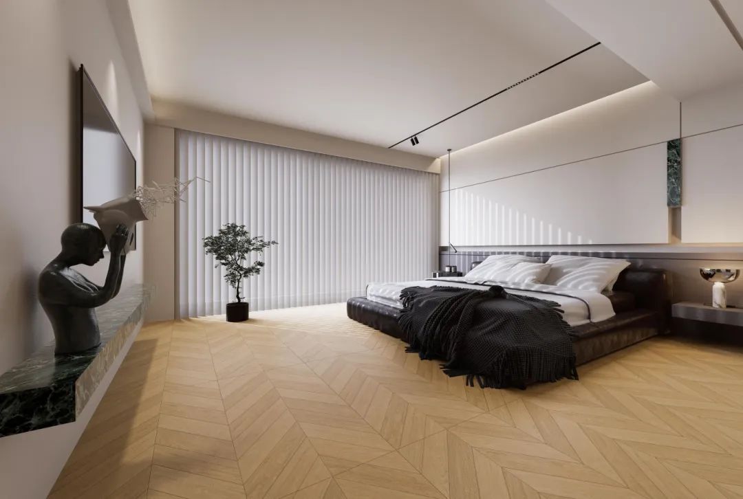 鱼骨纹设计,空间视觉效果瞬间立体化,全屋通铺,层层递进,完美打造一份清幽雅致的自然空间,浪漫且轻奢,温馨的色彩和谐交融,带有一丝轻复古韵味。