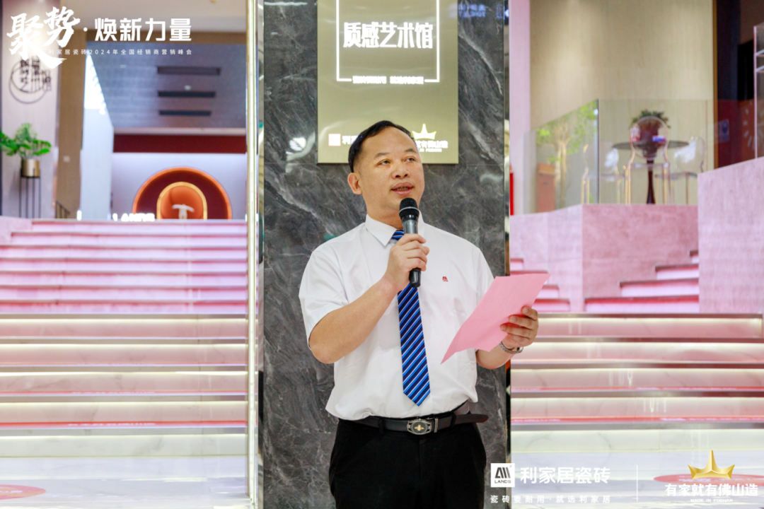 活动伊始, j9.com瓷砖营销总经理陈东荣上台致辞,陈总首先向现场所有来宾和各界朋友们表示热烈的欢迎和衷心的感谢,并表示全新亮相的j9.com展厅质感艺术馆,是品牌具有里程碑式的全新突破,标志着j9.com瓷砖迎来全新升级,以高端、时尚、兼容的新风貌焕新登场,开启了品牌发展的新篇章。